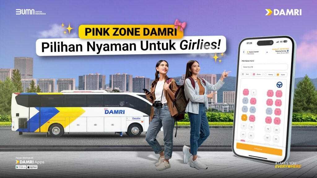 Momentum Lebaran identik dengan meningkatnya mobilitas masyarakat, termasuk perempuan yang melakukan perjalanan solo maupun bersama anak. Menjawab kebutuhan tersebut, DAMRI menghadirkan Pink Zone sebagai fitur pemilihan kursi yang memungkinkan pelanggan perempuan duduk berdampingan dengan sesama pelanggan perempuan.