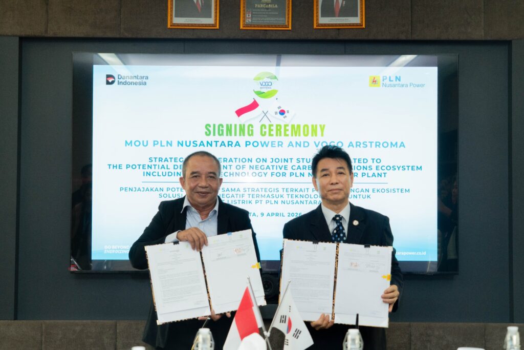 Penandatanganan MoU dilakukan pada Kamis (9/4) di Jakarta oleh Direktur Operasi Pembangkit Batu Bara PLN Nusantara Power, M. Irwansyah Putra, bersama Presiden Direktur VOGO-ARSTROMA, Kwon Jeong Sang.